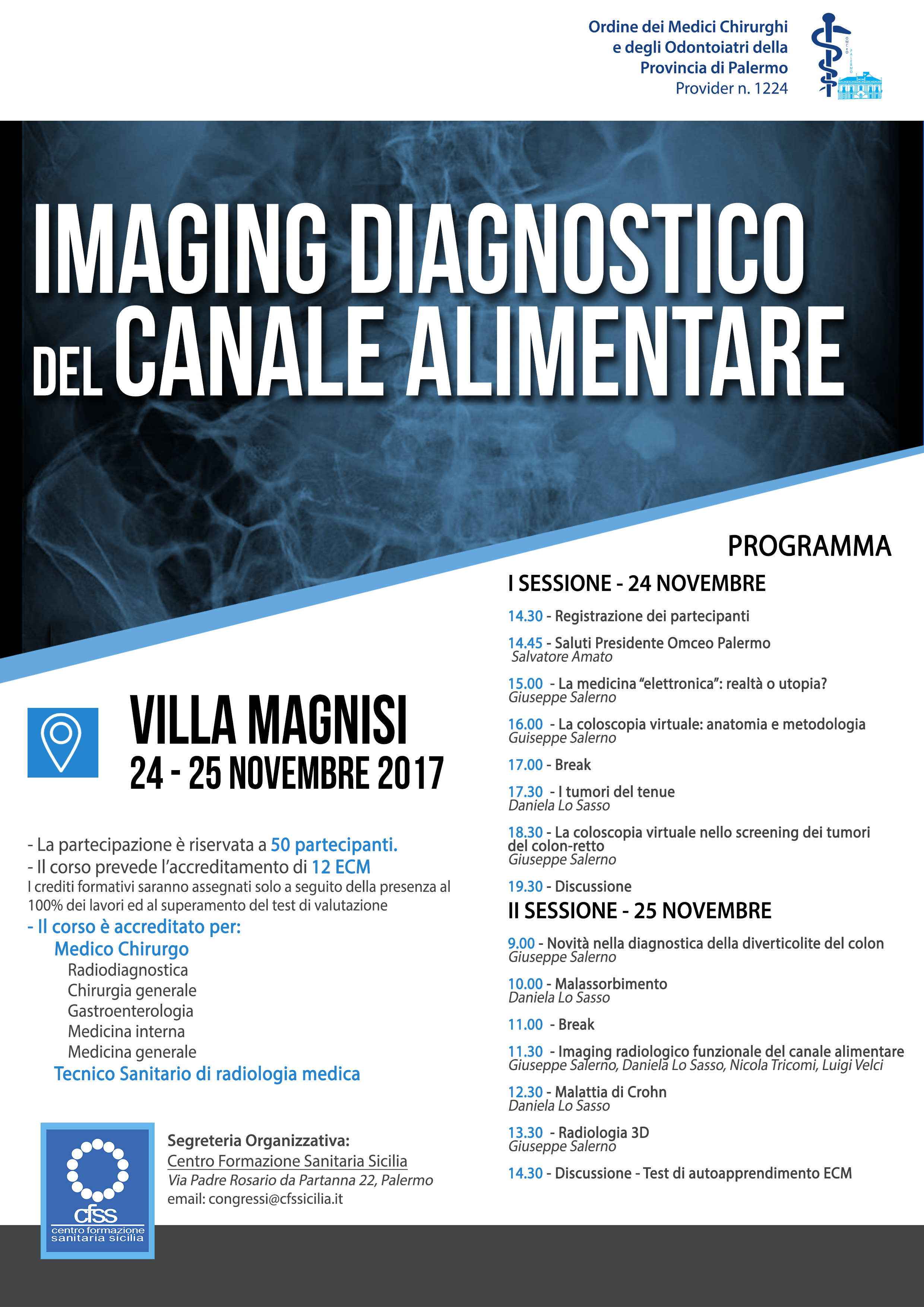 L'evento è aperto a 50 partecipanti ed è accreditato per le seguenti discipline: Medico chirurgo: Medicina Generale, Medicina Interna, Gastroenterologia, Radiodiagnostica, Chirurgia Generale, Tecnico Sanitario di Radiologia Medica