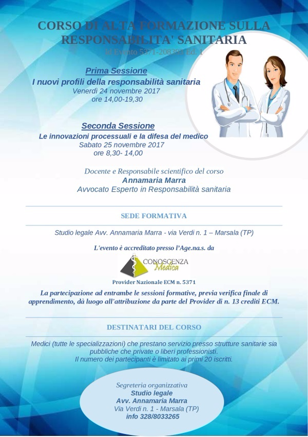 CORSO DI ALTA FORMAZIONE SULLA RESPONSABILITA' SANITARIA