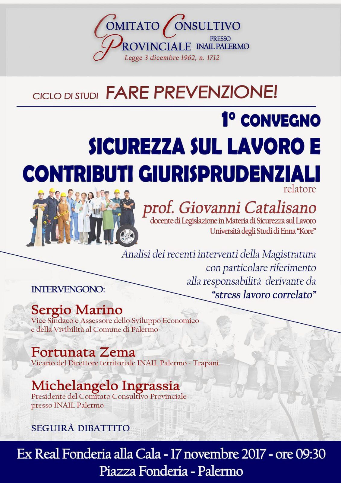 Il Comitato Consultivo Provinciale presso l'Inail di Palermo è lieto di ricordarVi l'invito e auspica di vederVi numerosi all'evento del 17 novembre, ore 09:30, nella sala della Ex Fonderia alla Cala, in piazza Fonderia a Palermo
