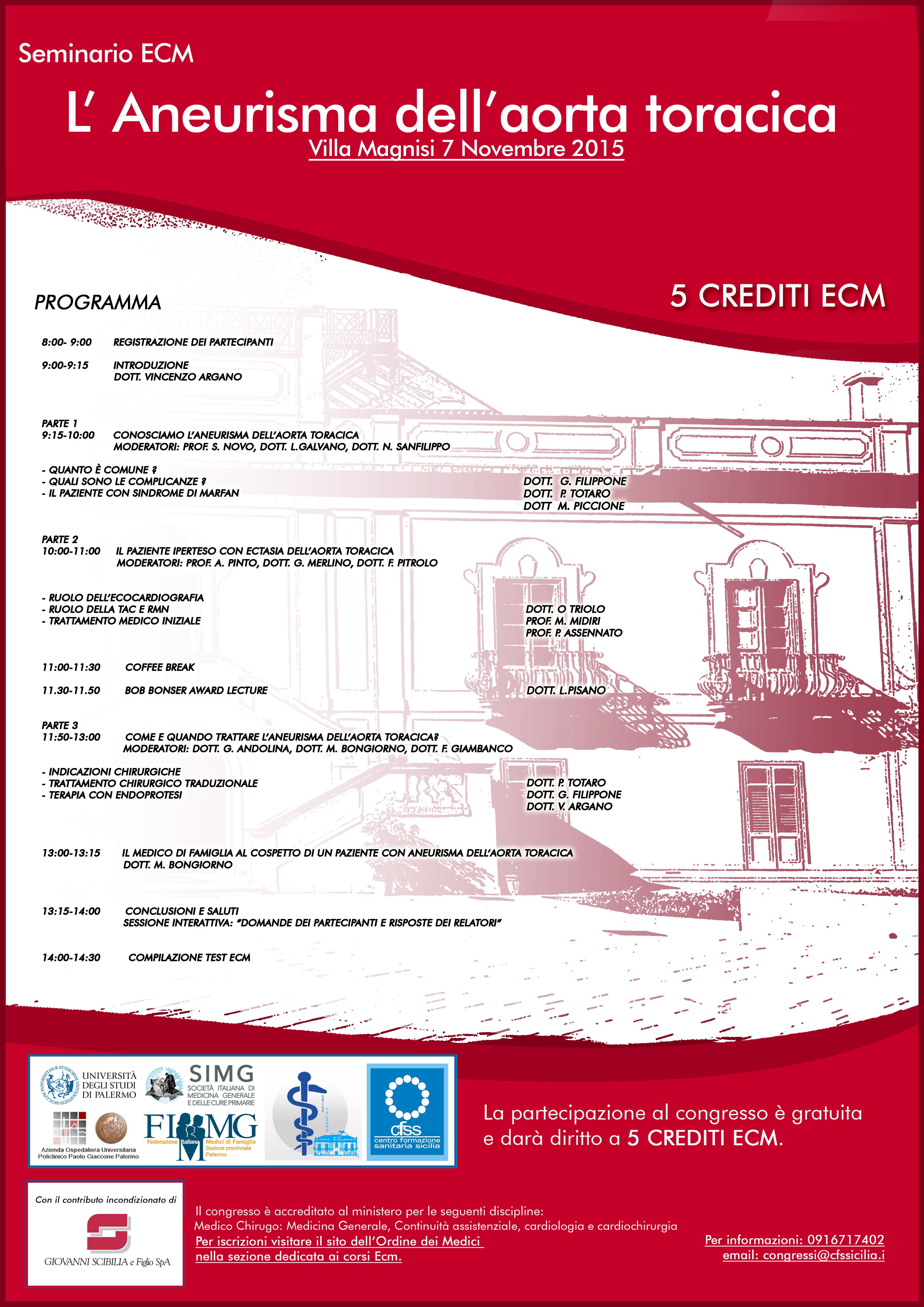Il corso è riservato a Medici di Medicina Generale, Continuità Assistenziale, Cardiologia e Cardiochirurgia e darà diritto a 5 crediti ecm