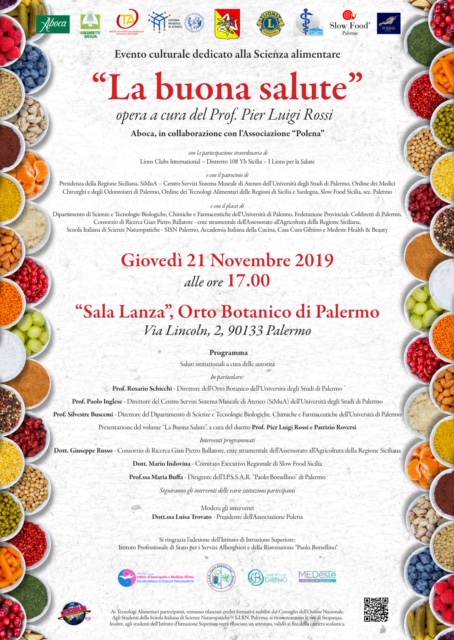 Eventi e Congressi La buona salute lunedì 18 novembre 2019 Facebook Twitter Sala Lanza, Orto Botanico di Palermo. Giovedi' 21 Novembre 2019 alle ore 17.00 Locandina Locandina